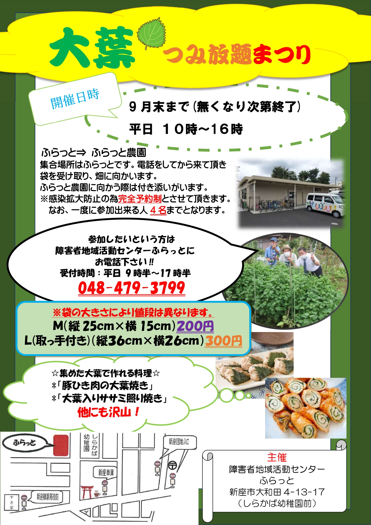8月末から開催していた、「大葉つみ放題まつり」はご好評につき9月28日をもって終了致しました。
